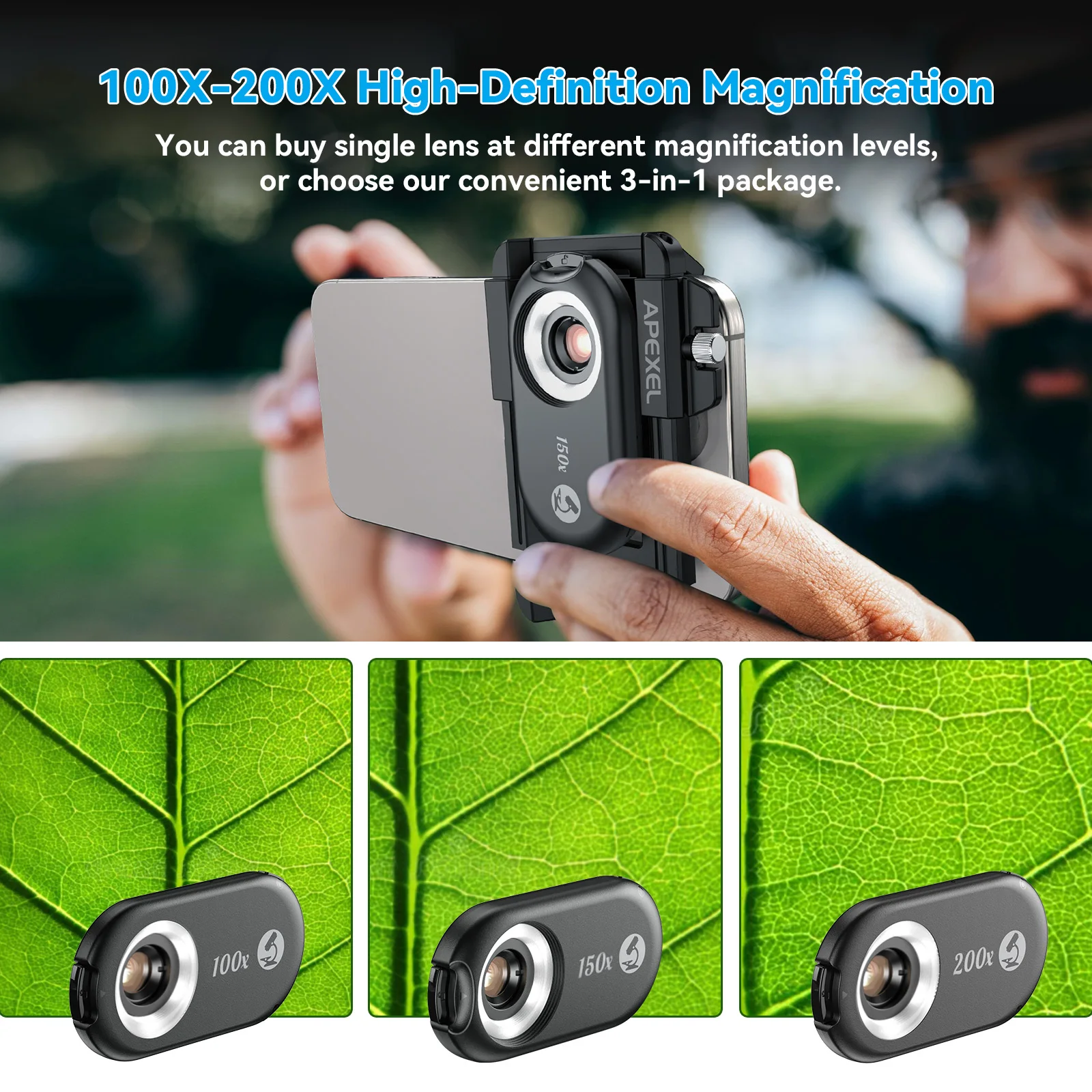 Tag: 5 100X -200X Microscope Lens for Phone Lens 3 in 1 Magnification MacroLens with LED Smartphone Accessories